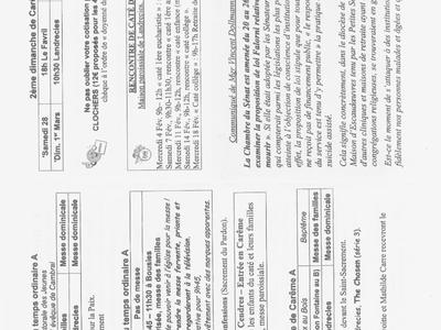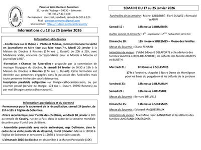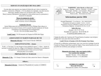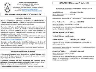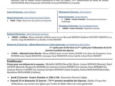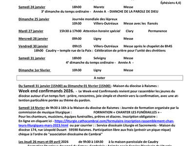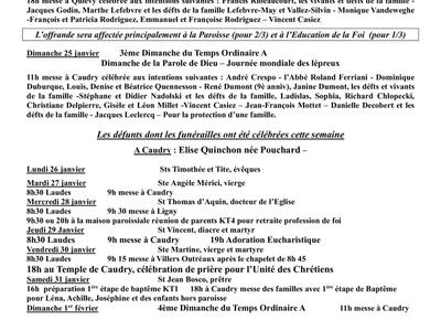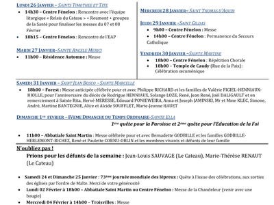 Samedi 31 janvier 18h00 Carnières Messe anticipée 4ème Dimanche Temps...