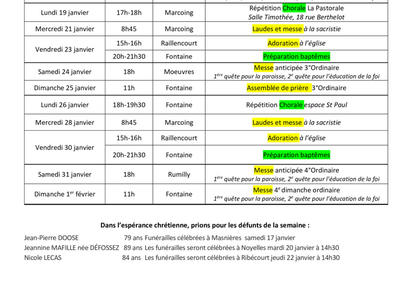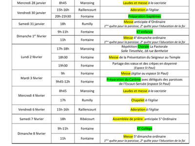 Les rendez-vous de la semaine de la Paroisse Sainte Barbe du Hainaut