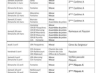 planning des messes 2° trimestre 2026