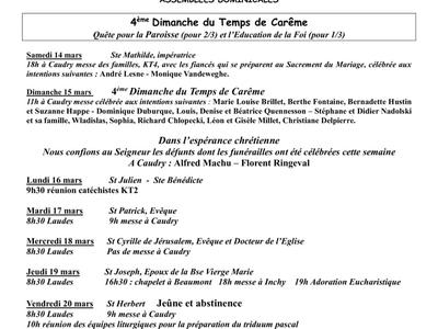 Annonces paroissiales du dimanche 15 mars 2026